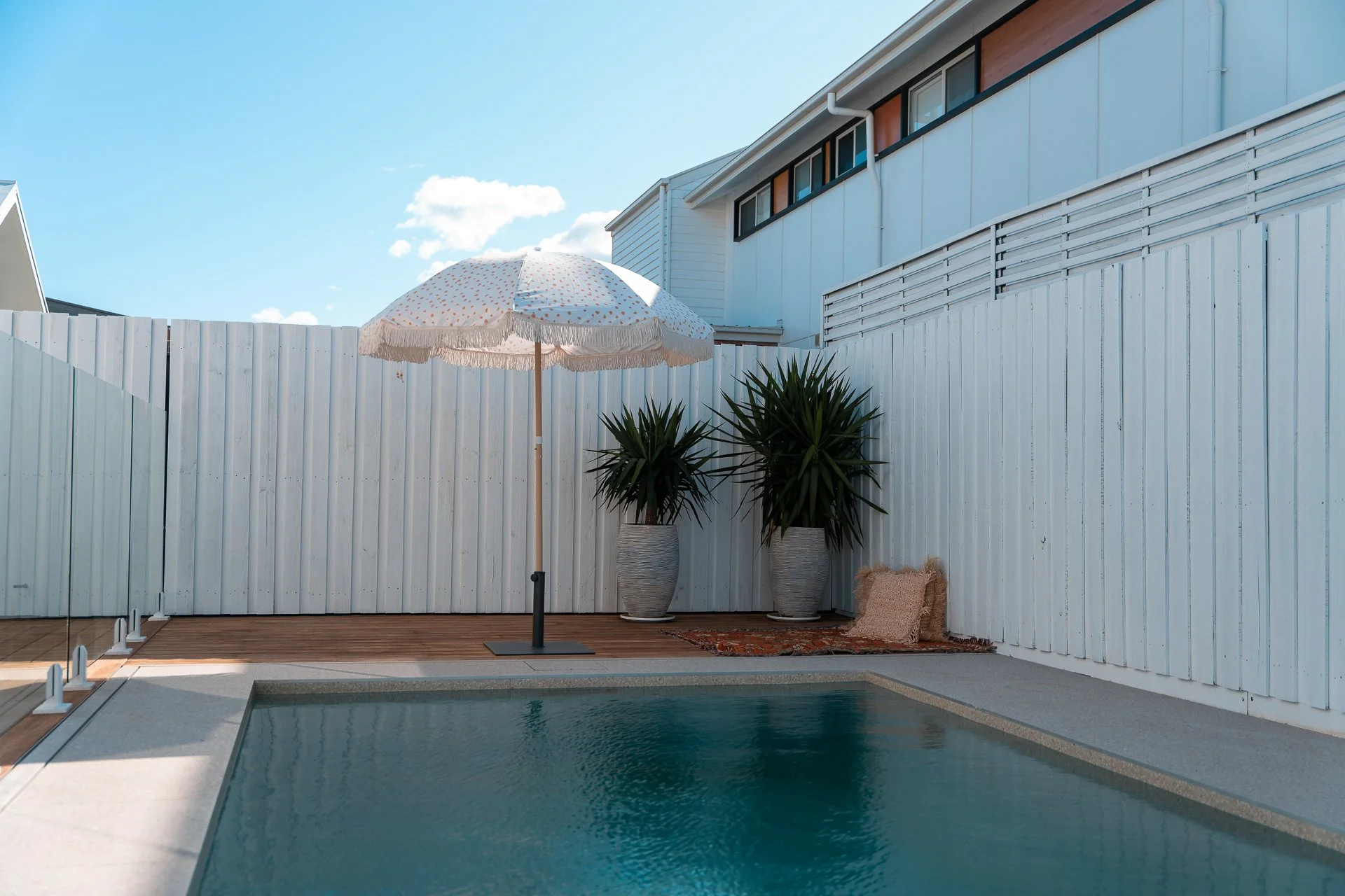 This concrete pool combines practical design with coastal style — timber decking, glass fencing, and soft, neutral tones for a timeless finish. Designed for easy maintenance and everyday use, it’s the kind of pool made for warm afternoons, family time, and relaxed entertaining.